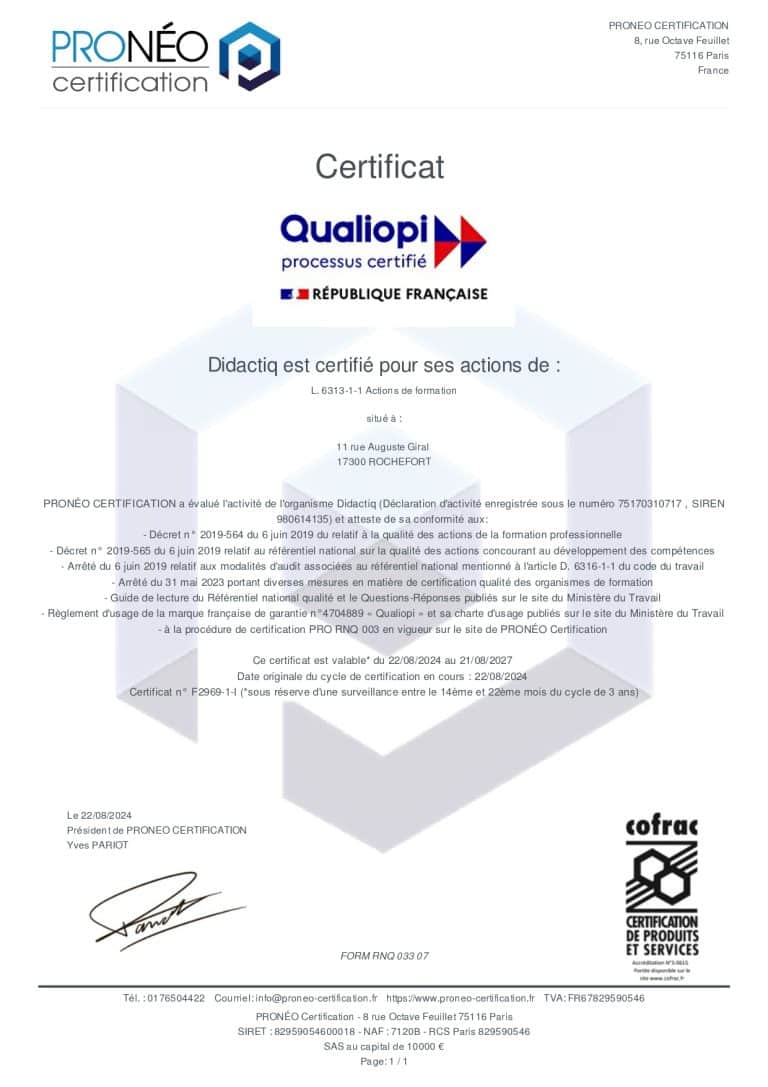 Depuis, je mets toute mon énergie pour accompagner les organismes de formation, les formateurs et les services formation d’entreprise dans leurs projets de développement et de professionnalisation. J’interviens sur des sujets aussi variés que l’obtention de la certification Qualiopi, le dépôt de certifications professionnelles auprès de France Compétences, la création d’offres de formation solides et différenciantes, ou encore la conception de jeux pédagogiques adaptés à chaque contexte.